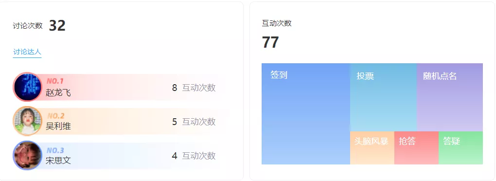 3.针对线上上课师生之间不能面对面交流的情况,活跃课程的气氛,增大学生学习的兴趣,提高学生的听课状态,在教师备课之中不同的知识点的节点设置互动环节,因授课中打字会影响授课效果,提前对要进行互动的内容进行编辑,提高授课时效,同时口述问题,利用点名、抢答、投票等形式,让学生参与其中。