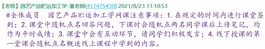 通过2020年线上授课经验,2021年在进行《园艺产品贮运与加工学》课程授课时继续沿用智慧树直播,并对授课班级分别建立QQ群。