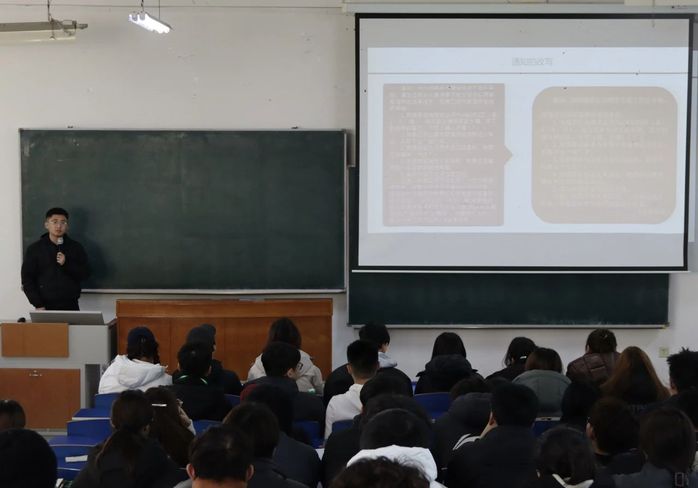 校党委宣传部新闻中心副主任孙春雷从新闻稿的定义引出主题,对新闻宣传发布信息写作内容细则、写作要求等方面进行细致讲解,介绍了新闻稿的适用范围,剖析了新闻稿的真实性、时效性、简明性和准确性,为学生骨干业务能力提升打下坚实基础。
