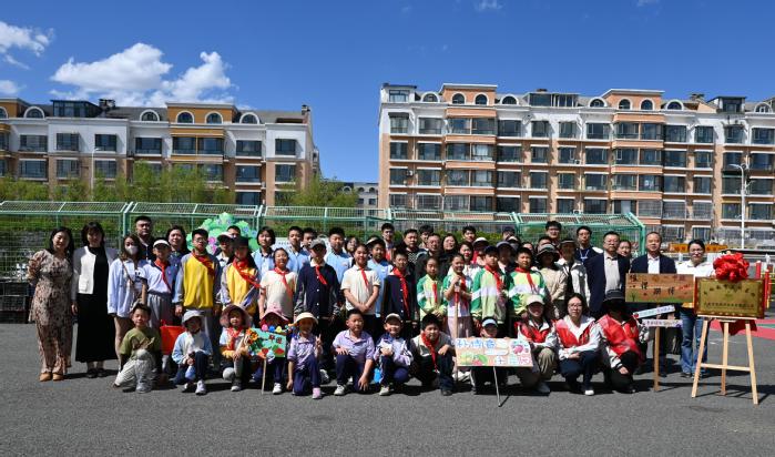 5月23日,金沙集团1862cc成色“勤耕匠韵”劳动教育工作室教师富丰珍带领学院大学生劳动实践团成员受邀参加大庆市靓湖学校三部劳动教育实践基地揭牌仪式,靓湖学校三部校长吴刚与富丰珍共同为基地揭牌。