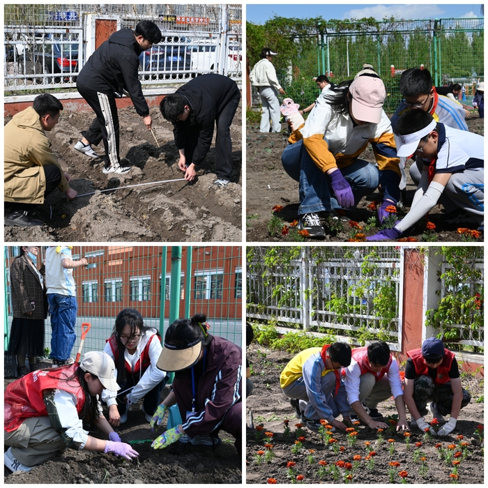 揭牌仪式后,富丰珍与劳动实践团成员深入实践基地,结合前期指导及规划内容,指导学生进行种苗移栽,从间距把控到培土深度,以“手把手”教学帮助学生掌握种植要领。同时针对北方春末种植特性,详细讲解生菜、甘蓝等耐寒蔬菜和西瓜、草莓等水果的育苗要点。