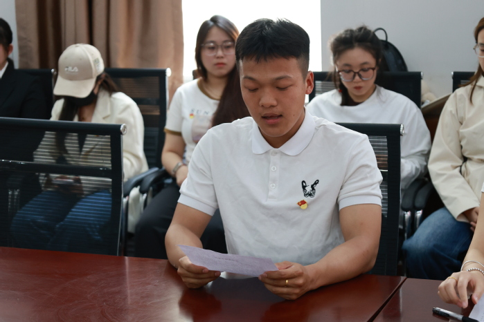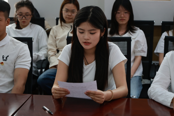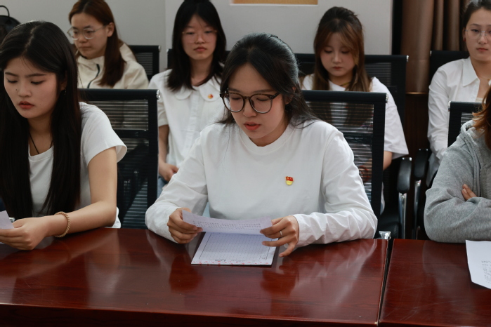本科生党支部组织委员李欣欣带领全体党员庄严宣誓。希望全体党员以誓言为指引,将遵规守纪融入日常,用实际行动恪守庄严承诺,永葆理想信念的政治本色,在人生新征程上步履坚实、行稳致远,以先锋姿态践行共产党员的初心使命。