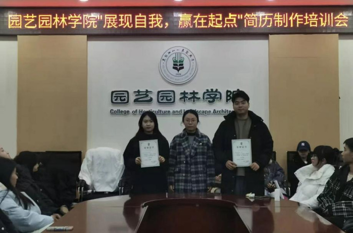 在校第六届简历设计大赛中我院杨再芳、马正山同学分别获二等奖、三等奖,辅导员任国翠老师为两位同学颁发证书及奖品。同时为在学院“执笔书精彩,简历绽光芒”简历设计大赛中获奖的同学颁发奖品及证书。